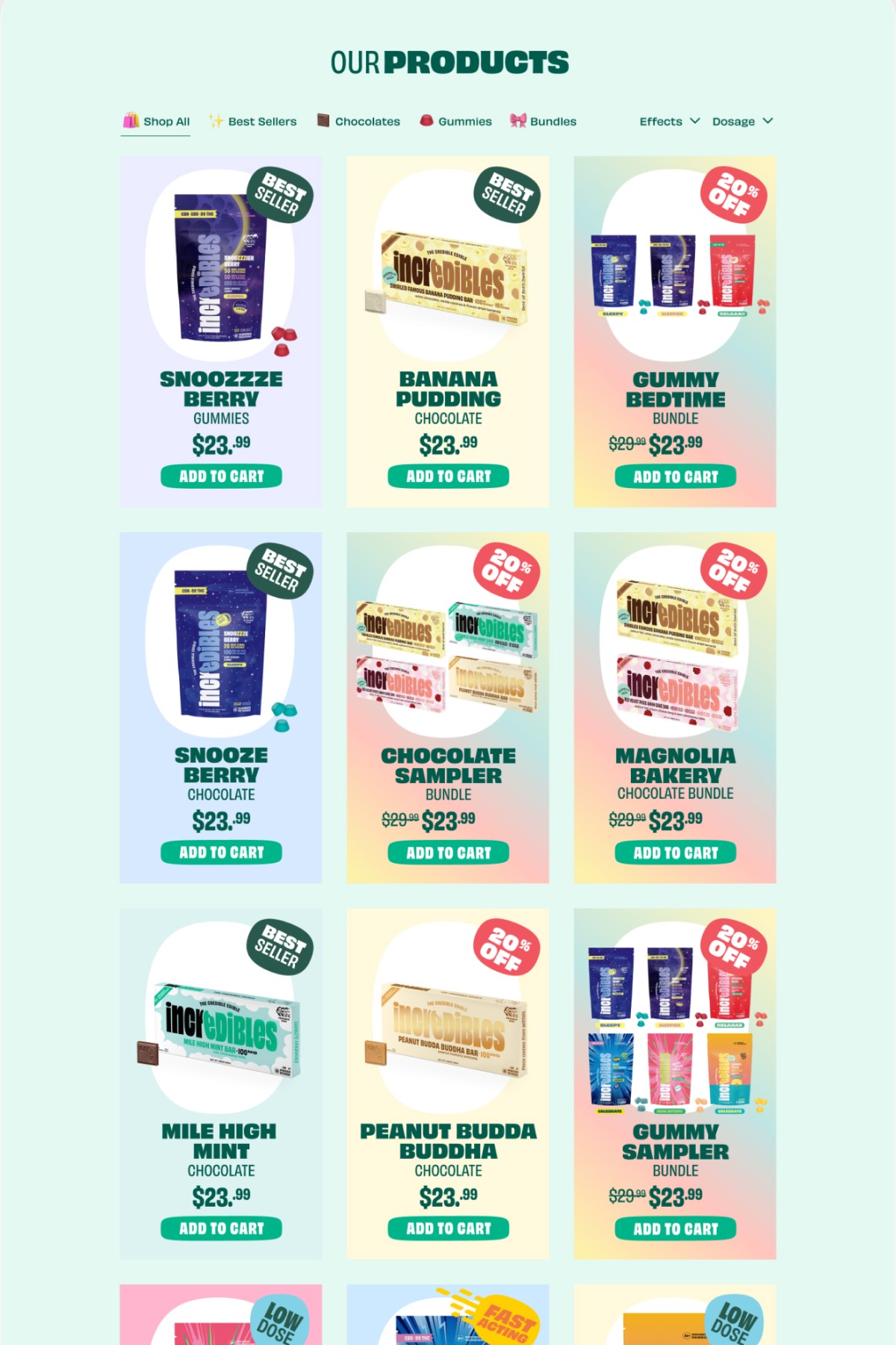 Incredibles is an edibles brand and a client I supported through a full end-to-end website rebuild (covered in a separate case study). While designing the new site, I also led the creation of a scalable design system to unify the brand across multiple websites, ensure visual consistency, and streamline workflows among design, engineering, and product.
