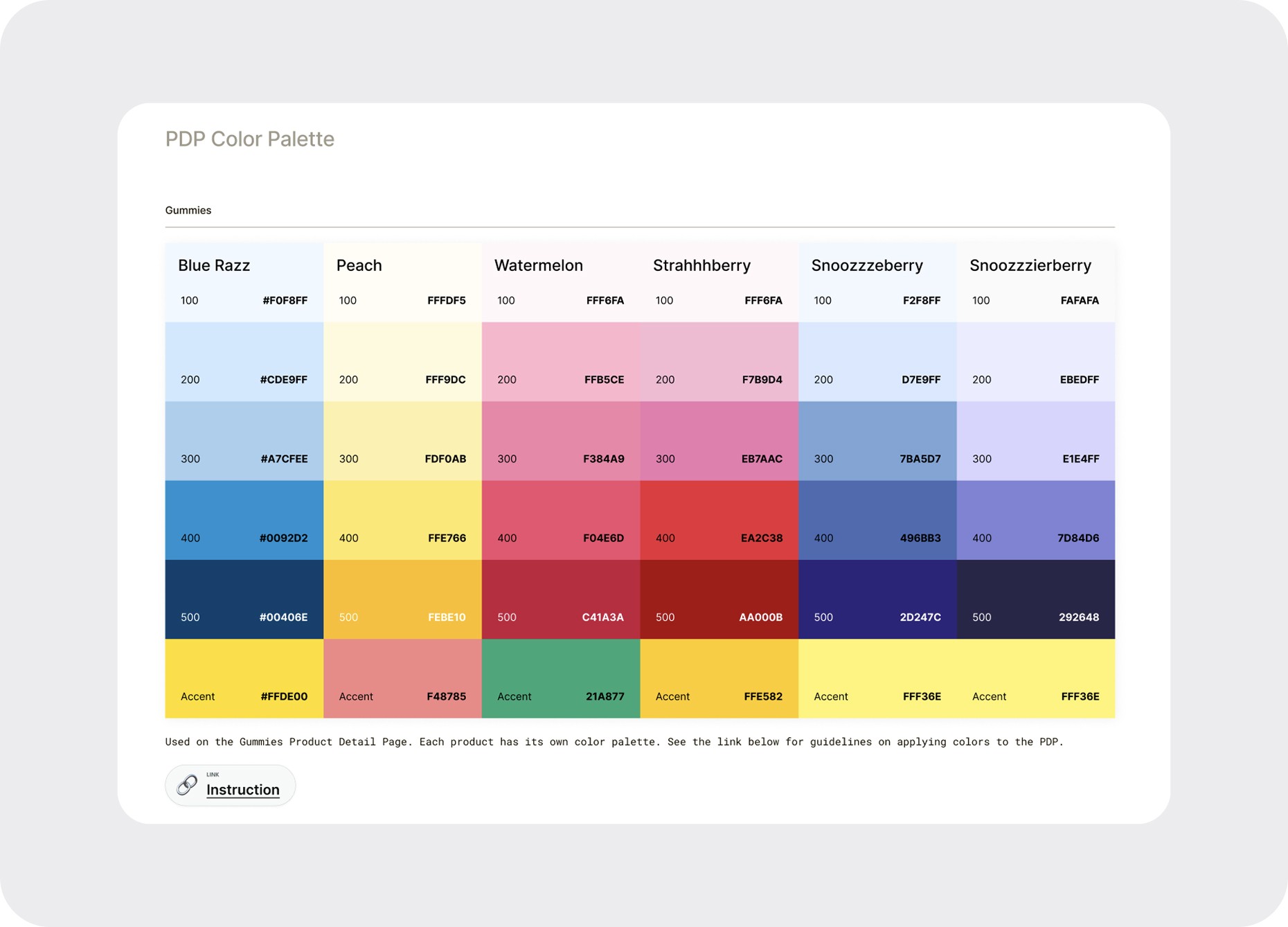 I created product-specific color palettes, systemized through numbered design tokens, to improve visual clarity and scanability for customers while enabling consistent, scalable PDP implementation. Clear color hierarchy helps users process information faster, while numbered tokens reduce handoff friction and support efficient collaboration with PMs and developers.